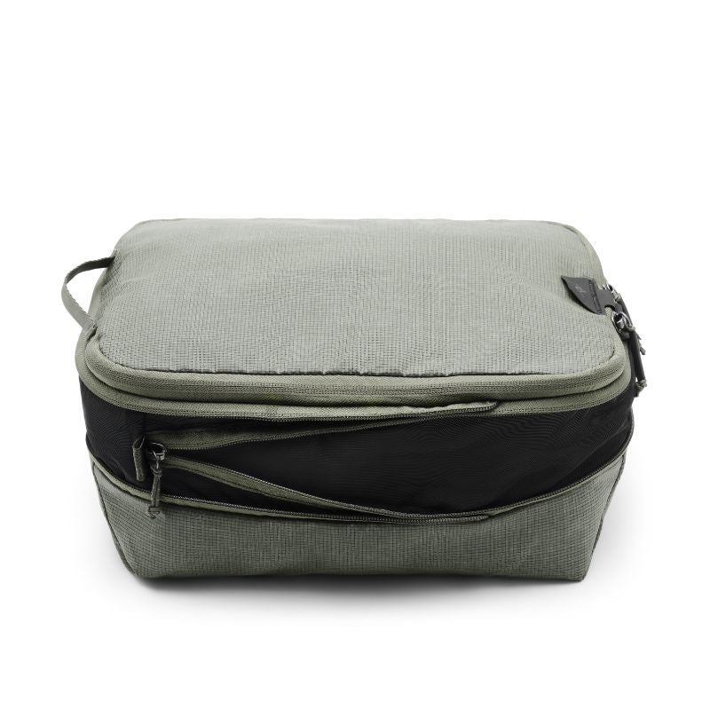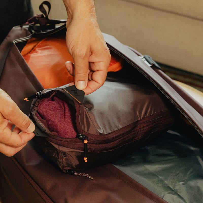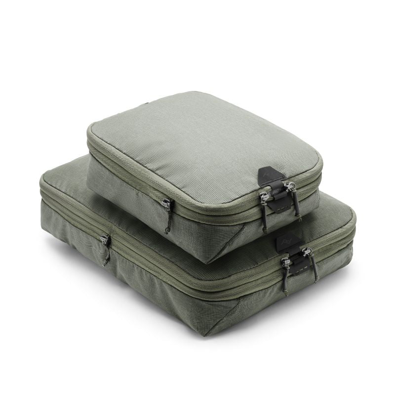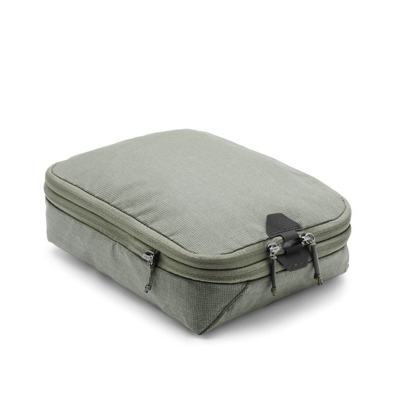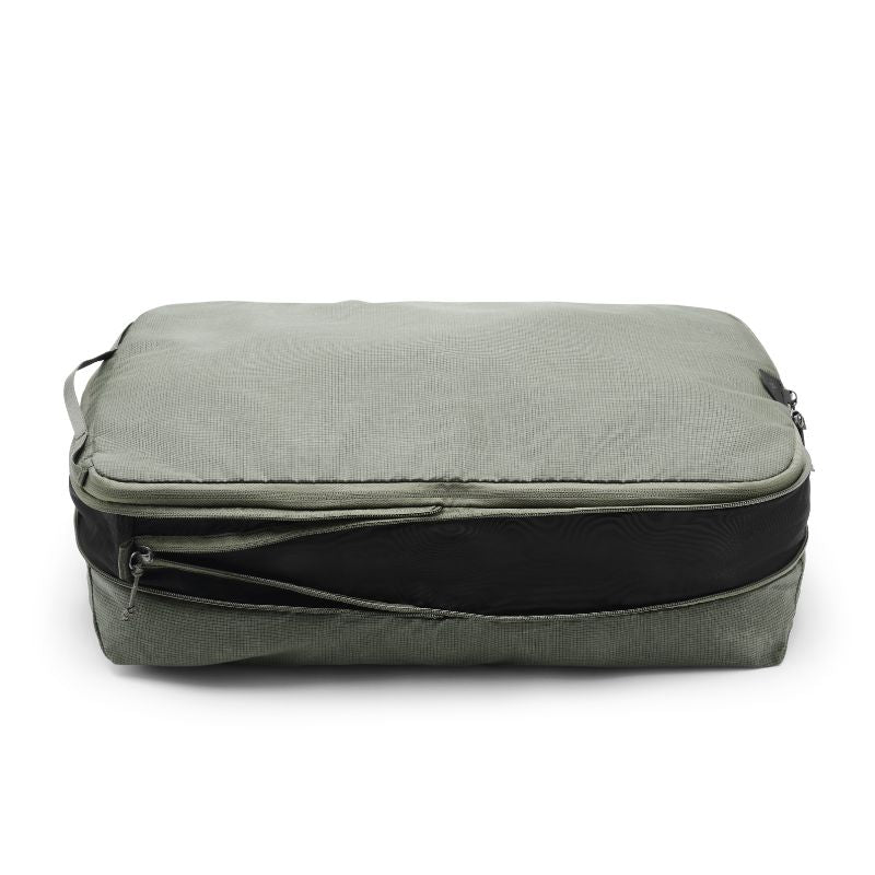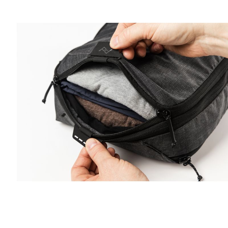 Compressible, easy to access, and instantly dividable, Peak Design Packing Cubes are functionally and aesthetically unmatched. A unique tear-away zipper lets you access contents quickly, unlike standard packing cubes with U-zip openings. An internal divider lets you separate clean and dirty clothes, and allows each compartment to expand/contract based on its contents. And, an expansion/compression zip provides additional space, or the ability to compress contents once packed. Outer shell is a beautiful, self-healing 70D nylon/poly blend.