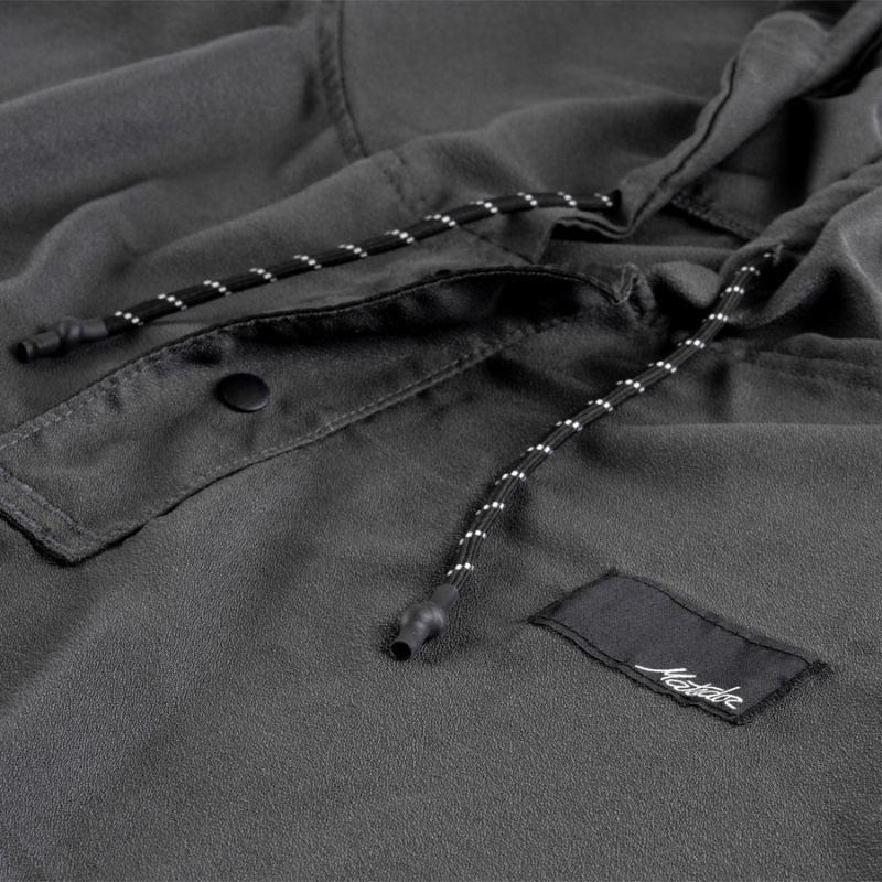 -Hood with drawstring and snap button collar